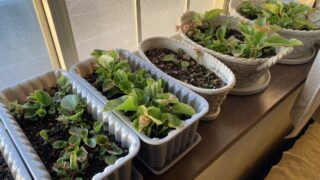 冬越えの苗…ベコニア。今年はよく育たない。