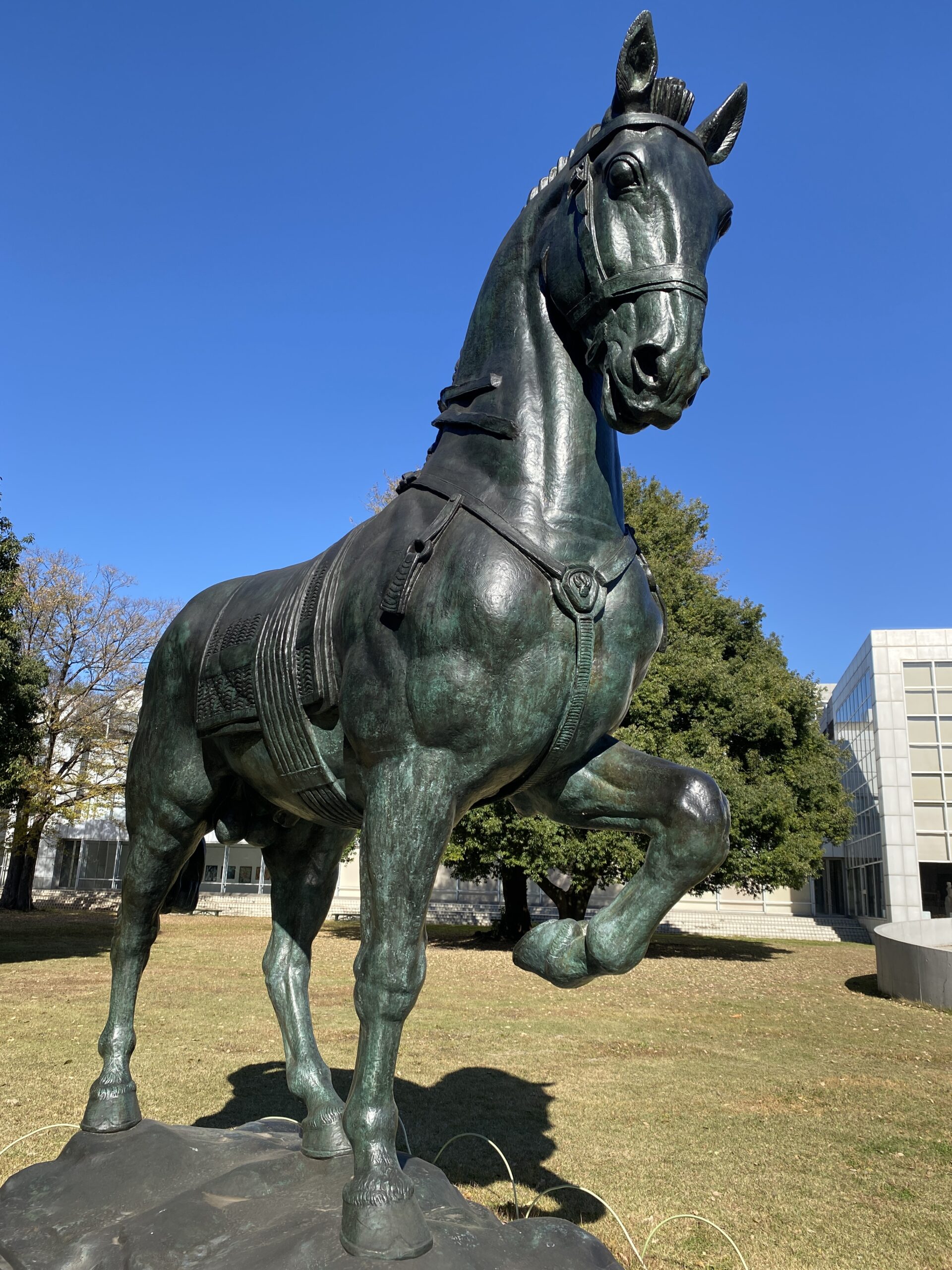 大きな馬の銅像眺めて…